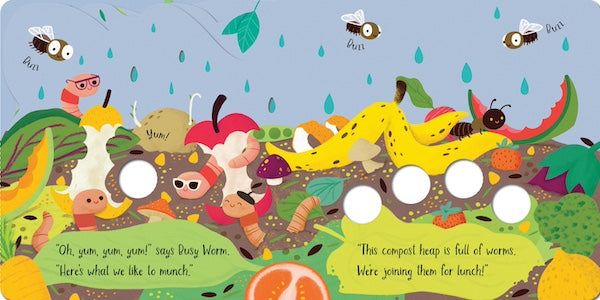 يمكن للأطفال الصغار وكبارهم إدخال أصابعهم من خلال الثقوب ليصبحوا دودة نشيطة ودودة صغيرة، ويتحركون في هذه القصة الممتعة. تلتقي الديدان المتعرجة بـ "سليب ذا سنيل" و"باز ذا نحلة" لتتجنب أن يأكلها الطائر المبكر قبل أن تنضم إلى أصدقائها لتناول غداء متعرّج في كومة السماد.