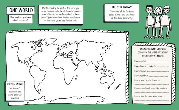 A Mindful Kids Global Citizen activity book for young people to colour, doodle and DIY their way to a more caring, kinder and accepting world.